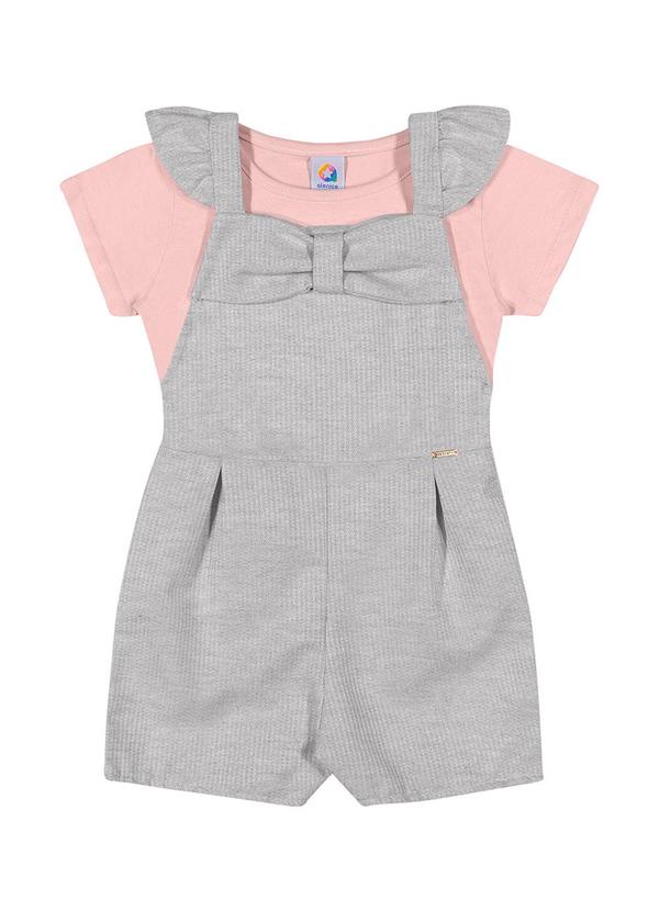 Alenice - Conjunto Jardineira com Laço Menina Rosa