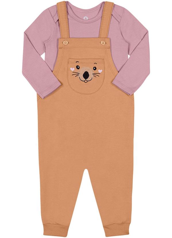 Alenice - Conjunto Jardineira Divertida Menina Rosa