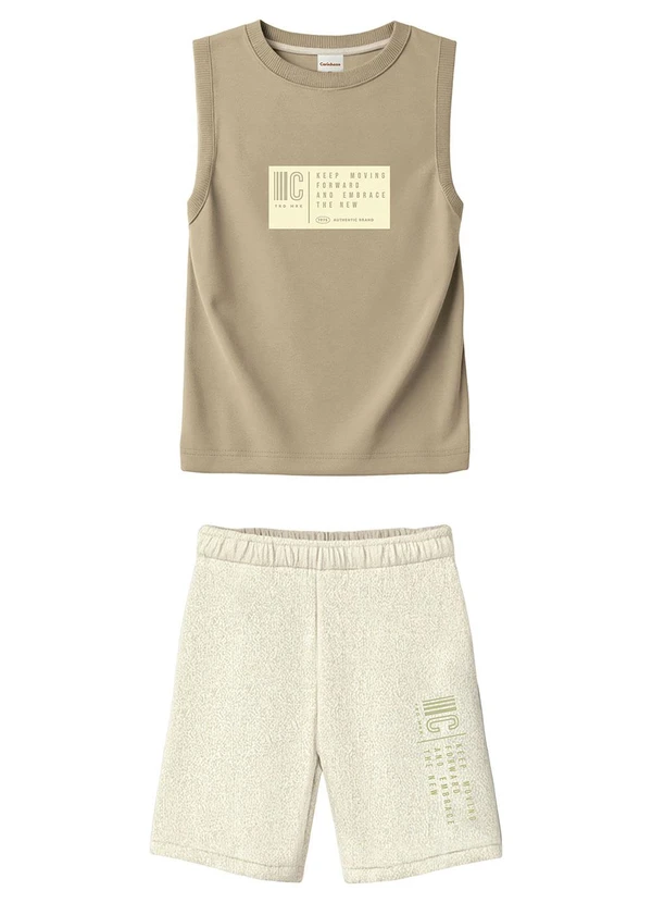 Carinhoso - Conjunto Keep Moving Forward em Moletinho Cáqui