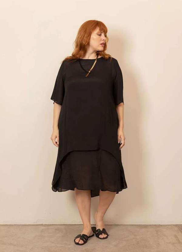 Conjunto pluz size em tecido tecnológico. Vestido de alças finas com reguladores. Modelagem evasê e comprimento midi. Túnica com modelagem evasê. Decote canoa. Pontas nas laterais. Use as peças juntas como conjunto ou separadas em outras combinações. Observação: Essa peça passou por processo de lavagem e não sofrerá encolhimento. Sugerimos lavar essa peça em água fria e à mão. Se optar pela máquina, use o modo delicado. Isso irá garantir bons resultados finais e uma maior durabilidade da sua peça. Não usar secadora. Não aceitamos devoluções de peças usadas. Medidas: G equivale 46-50 GG equivale 50-54 EXG equivale 54-58 Busto - Vestido 124cm 132cm 140cm Cintura- Vestido 134cm 142cm 150cm Quadril- Vestido 144cm 152cm 160cm Comprimento- Vestido 114cm 116cm 118cm Busto - Regatão 132cm 140cm 148cm Cintura- Regatão 142cm 150cm 158cm Quadril- Regatão 152cm 160cm 168cm Comprimento- Regatão 78cm 80cm 82cm