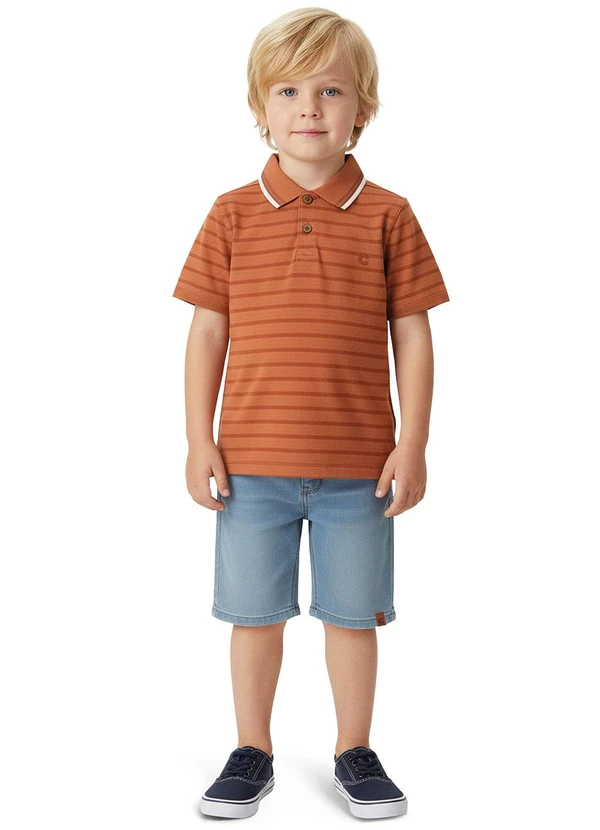 Carinhoso - Conjunto Listrado com Jeans Laranja