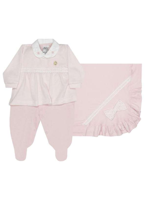 Sonho Mágico - Conjunto Macacão Manta Rosa Detalhes Bordados Sonho Mágico Rosa