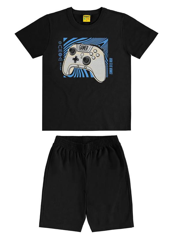 Rovi Kids - Conjunto Machão C Bermuda em Meia Malha Preto