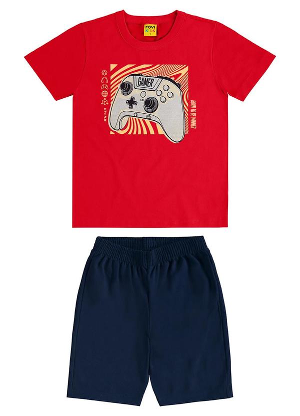 Rovi Kids - Conjunto Machão C Bermuda em Meia Malha Vermelho