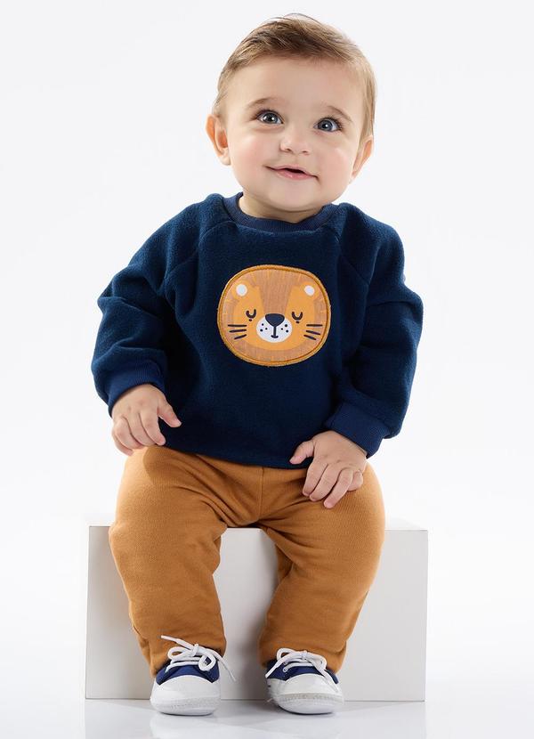 Pulla Bulla - Conjunto Malha Soft e Moletom Azul