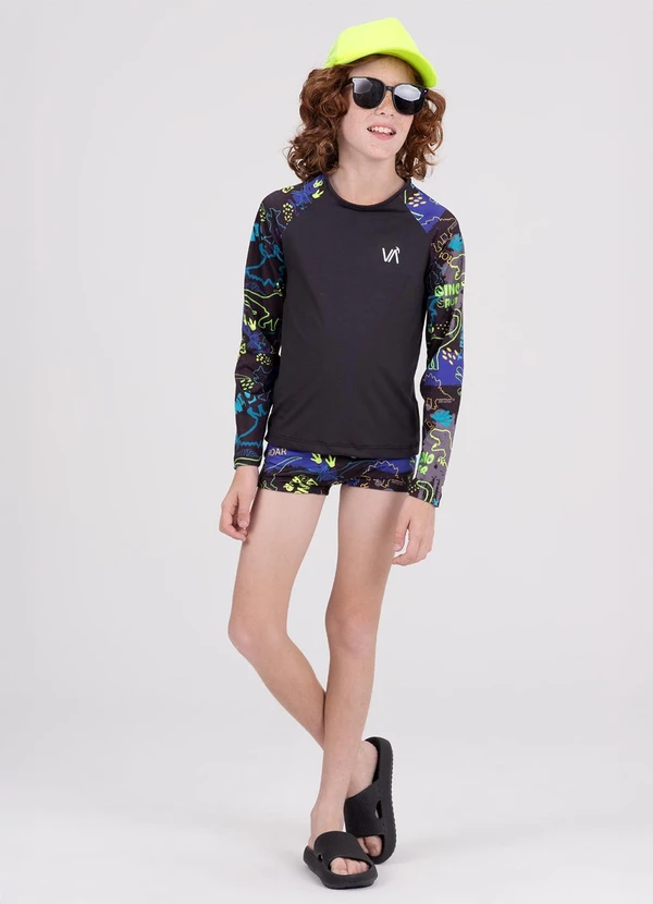 Vida Costeira - Conjunto Manga Longa Uv 50+ Dinos Amarelo