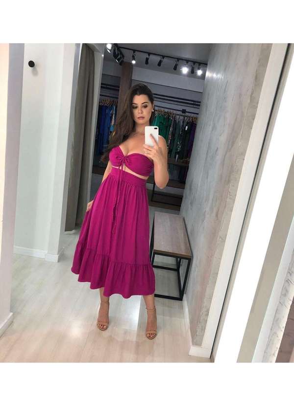 O TECIDO QUE AMAMOS O tecido viscose é a escolha perfeita para se manter fresco e confortável em dias quentes. Com sua textura suave e fluida, proporciona um caimento perfeito e elegante, sendo ideal para roupas leves e arejadas que te acompanham em todas as ocasiões! Conjunto composto por cropped com bojo e saia midi com detalhe de elástico na cintura. Tecido: Viscose Medidas: M ? 137 cm de comprimento, 80-100 cm de busto, 70-90 de cintura, 110-115 cm de quadril.G ? 137 cm de comprimento, 90-110 cm de busto, 80-120 de cintura, 110-125 de quadril. Obs.: M = 38/40 G= 42 A modelo esta usando o tamanho M