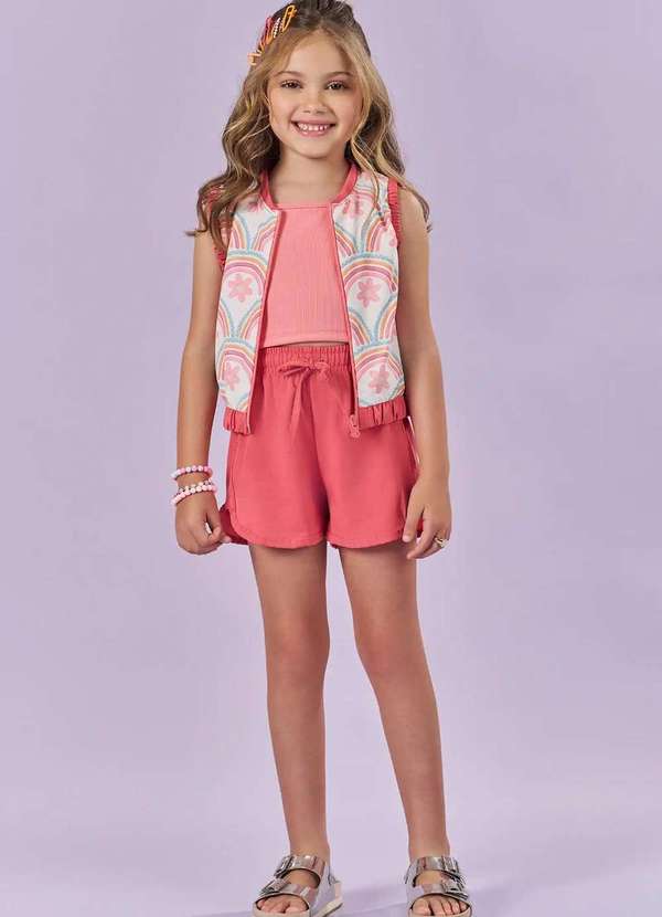 Conjunto Menina 3 Peças Rosa Estampado Kukiê. Conforto, estilo e fofura em cada detalhe! Essa peça infantil foi feita pensando no dia a dia dos pequenos: leve, macia e com caimento ideal para garantir liberdade de movimento em qualquer aventura. O tecido é de alta qualidade, com toque suave e acabamento impecável, ideal para brincadeiras, passeios ou aquele momento especial em família. Design moderno e cheio de charme, para deixar seu pequeno ainda mais estiloso!