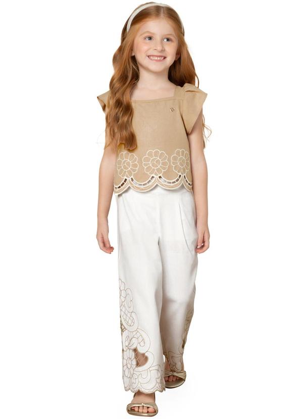 Milon - Conjunto Menina Bordado Bege
