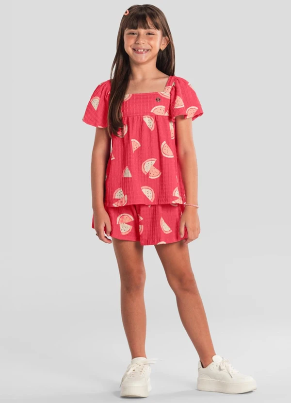Brandili - Conjunto Menina em Cotton Quadriculado Vermelho