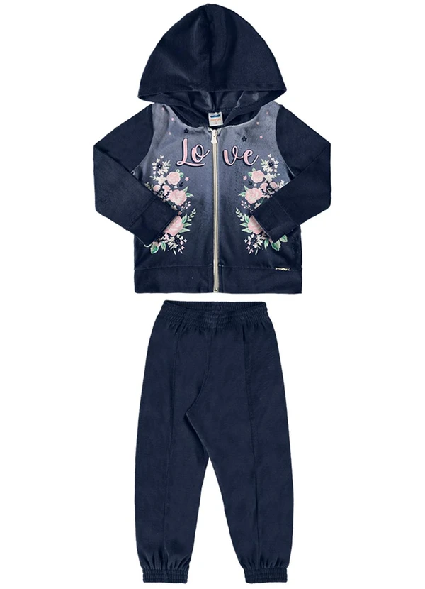 Marlan - Conjunto Menina Jaqueta e Calça Plush Love Azul