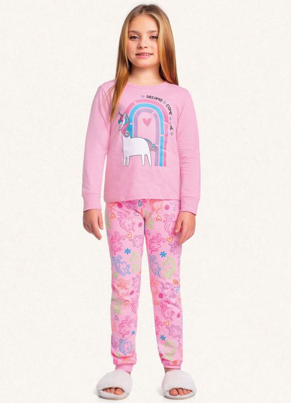 Fakini Kids - Conjunto Pijama Blusa Manga Longa e Calça Rosa