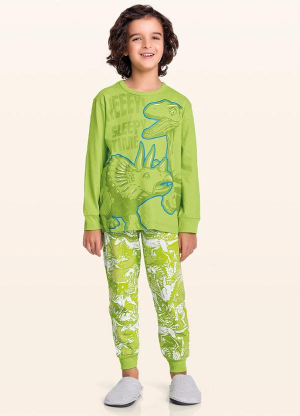 Fakini Kids - Conjunto Pijama Camiseta M/Longa/Calça Verde