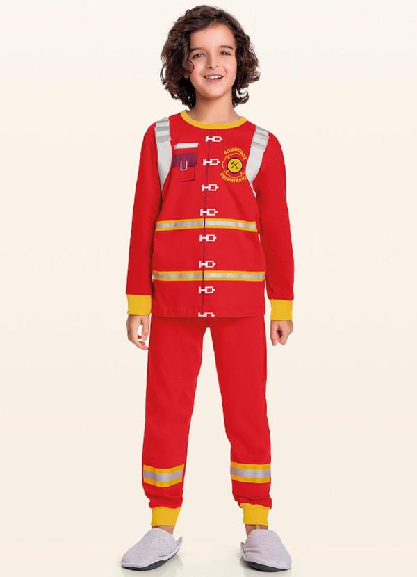 Fakini Kids - Conjunto Pijama Camiseta M/Longa/Calça Vermelho