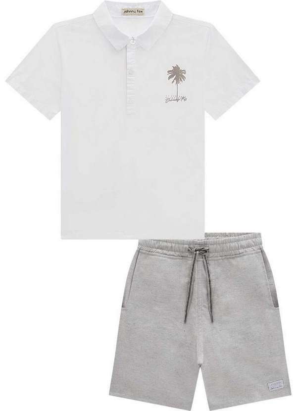 Johnny Fox - Conjunto Polo Bermuda Cinza Infantil Johnny Fox Mescla