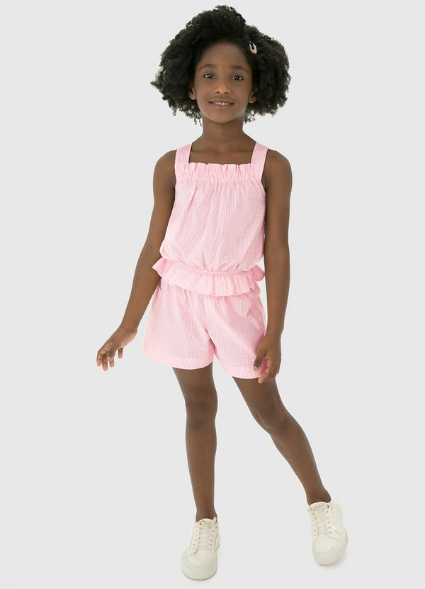 Malwee Kids - Conjunto Rosa Claro Anarruga Listrado Cropped