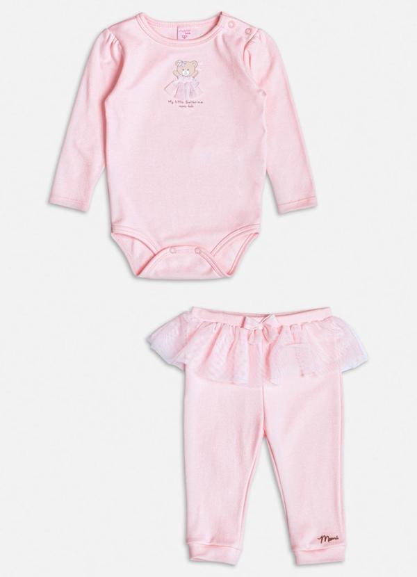 Momi - Conjunto Rosa Manga Longa com Ursinho Rosa