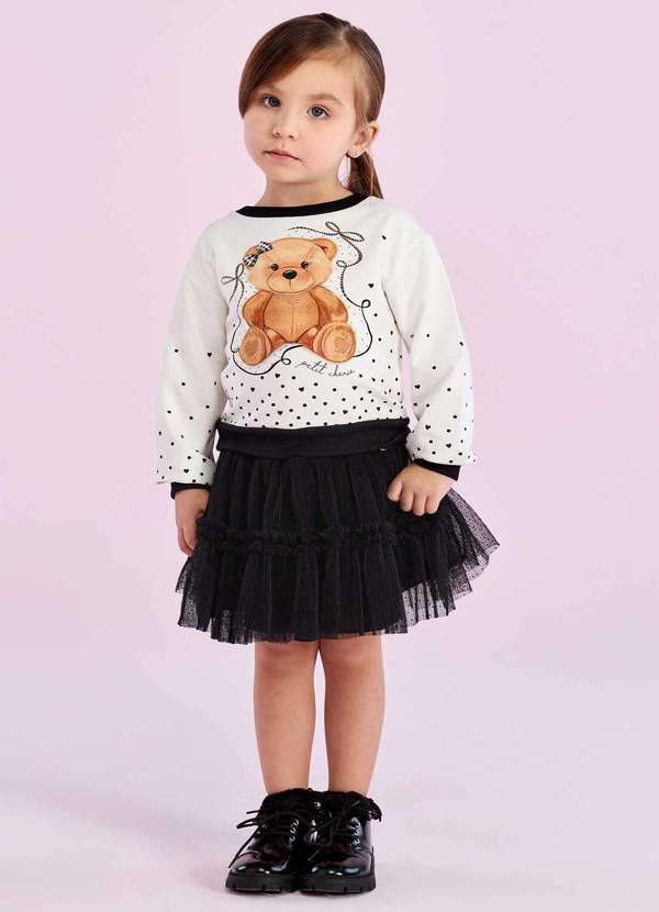Petit Cherie - Conjunto Saia Preto Menina Petit Cherie Estampado