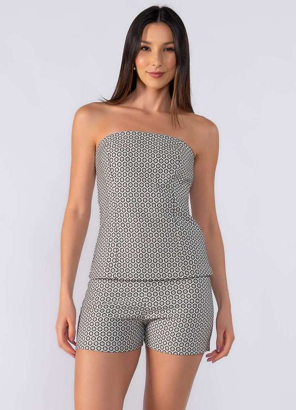 Conjunto em jacquard tomara que caia e short curto Dica: Usar com sandálias Composição:67%poliester 31%algodão 02%elastano |Forro: 85%liocel 15%poliester Modelo usa: Tamanho P - Medidas 1,75 de altura | Peso: 60k