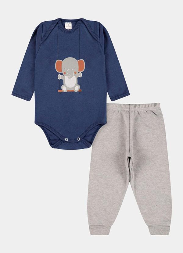 Stolf Baby Kids - Conjunto Suedine Longo Elefante Balanço Azul
