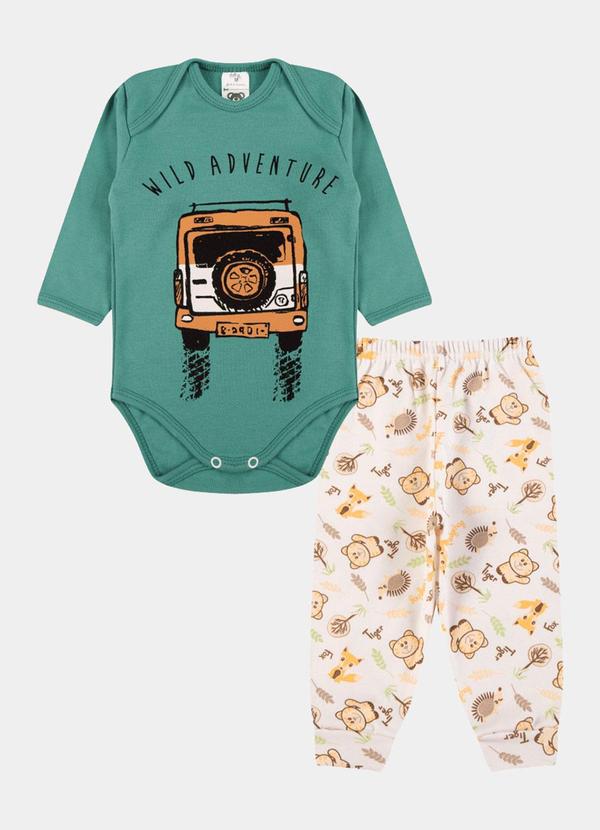 Stolf Baby Kids - Conjunto Suedine Longo Estampado Adventure Verde