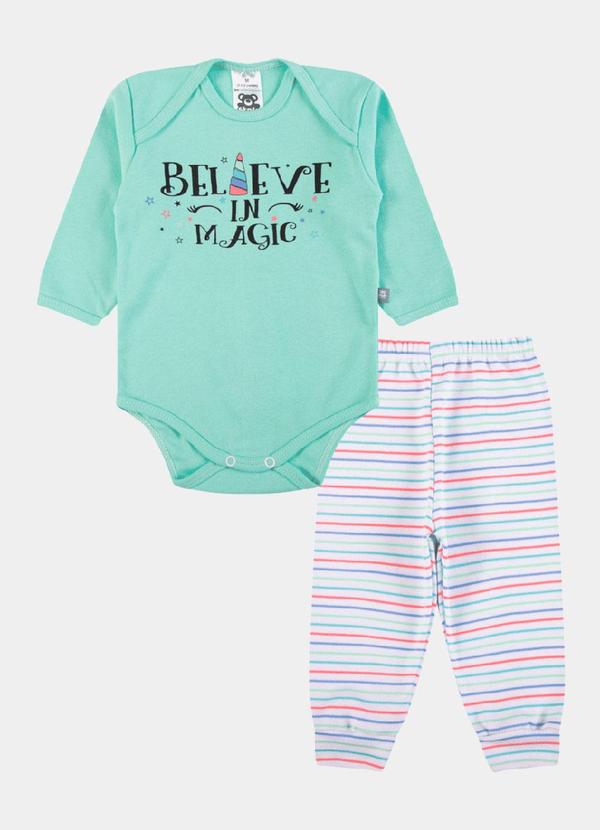 Stolf Baby Kids - Conjunto Suedine Longo Estampado Believe V Verde