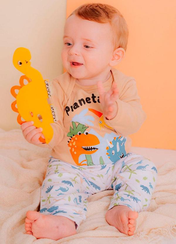 Stolf Baby Kids - Conjunto Suedine Longo Estampado Planeta Marrom