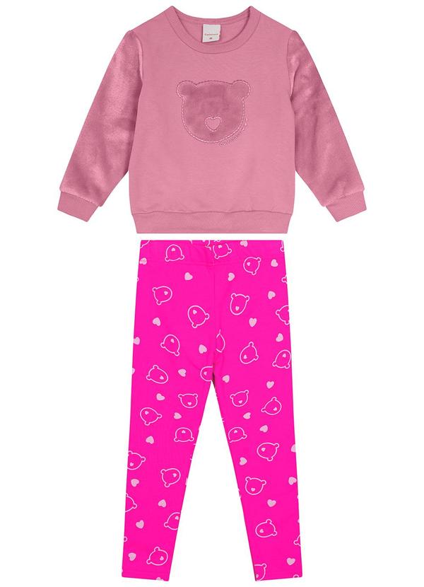 Carinhoso - Conjunto Ursinhos em Moletom Menina Rosa