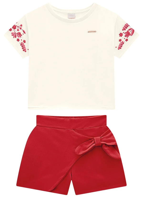 Carinhoso - Conjunto Vermelho Floral com Laço Menina