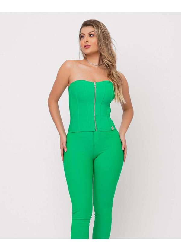 Miss Misses - Corselet Miss Misses com Barbatanas e Ziper Verde Verde