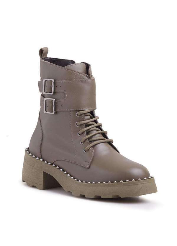 Via Miss - Coturno Feminino Couro Bota Cano Medio Tratorado Spikes Verde Militar