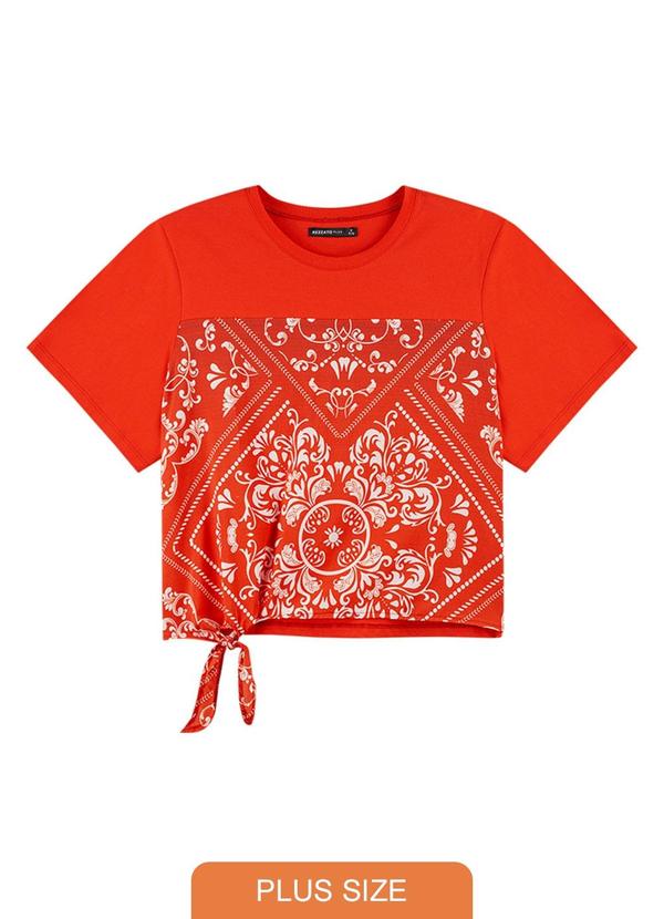 Rezzato - Cropped Estampado com Amarração Plus Laranja