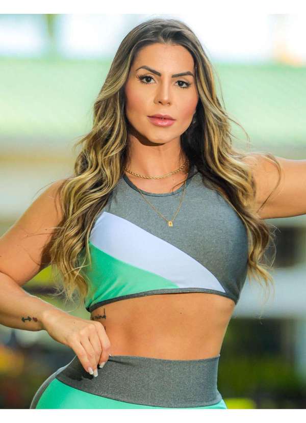 Fitmoda - Cropped Fitness sem Bojo com Decote Vazado nas Costas Cinza