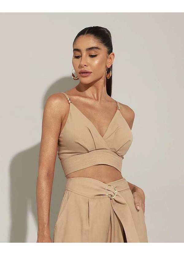 Miss Misses - Cropped Miss Misses com Ponteira e Ziper Bege Bege