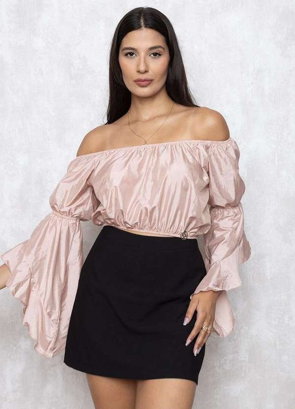 Miss Misses - Cropped Miss Misses Liso Manga Sino Rosa
