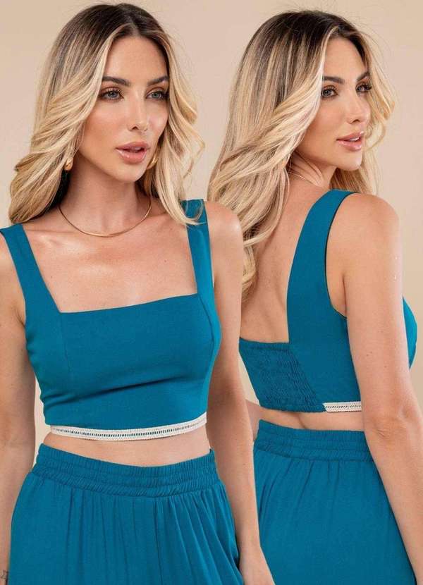 Sawary - Cropped Sawary Lastex - 278738 Azul