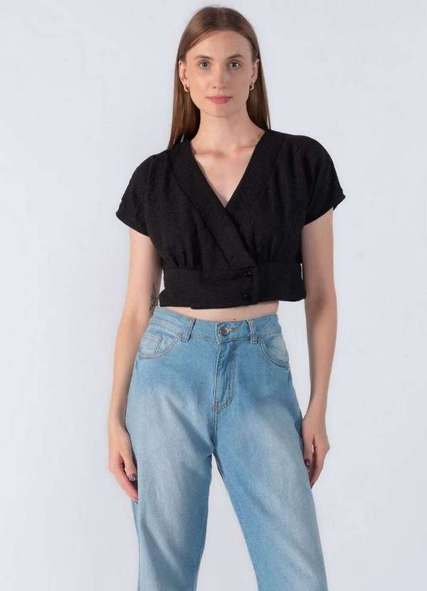 Lamis - Cropped Transpassado com Botoes Preto