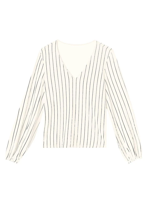 Malwee - Blusa Ampla em Moletinho Listrado Off White
