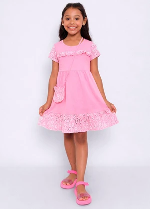 Vestido Infantil Laise com Brinde Bolsinha Rosa
