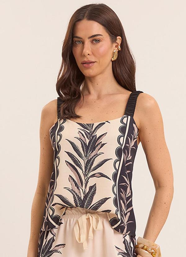 Doce Trama - Blusa de Alça Tropical Estampada Preto
