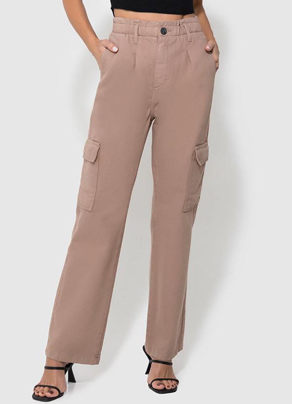Enfim - Calça Bege Feminina Reta em Sarja