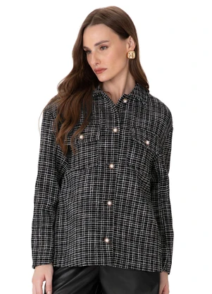 Jaqueta Ampla em Tweed Preto