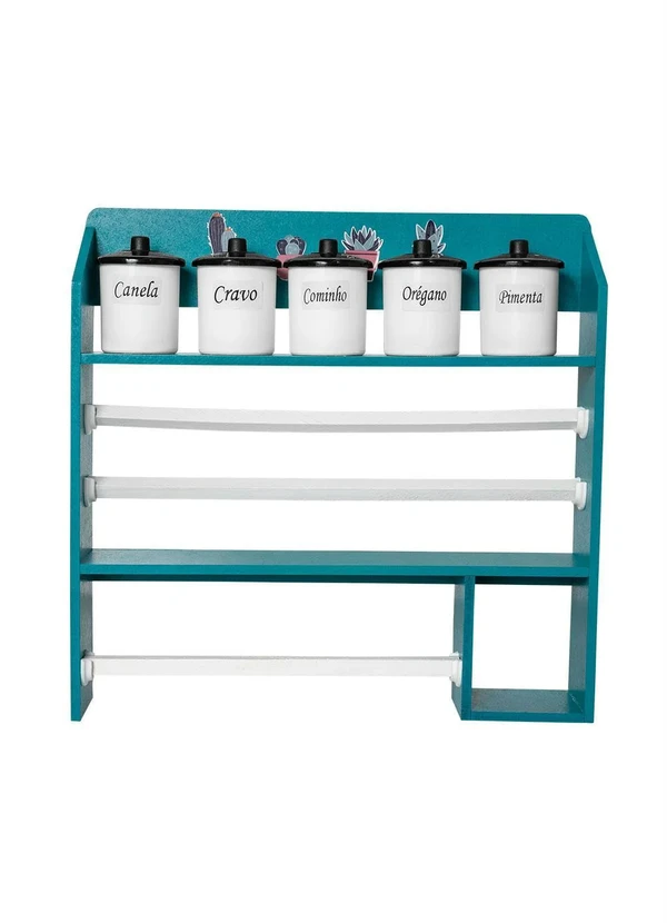 Lar e Lazer - Estante Trio Rolos e 5 Potes Mantimentos Cacto