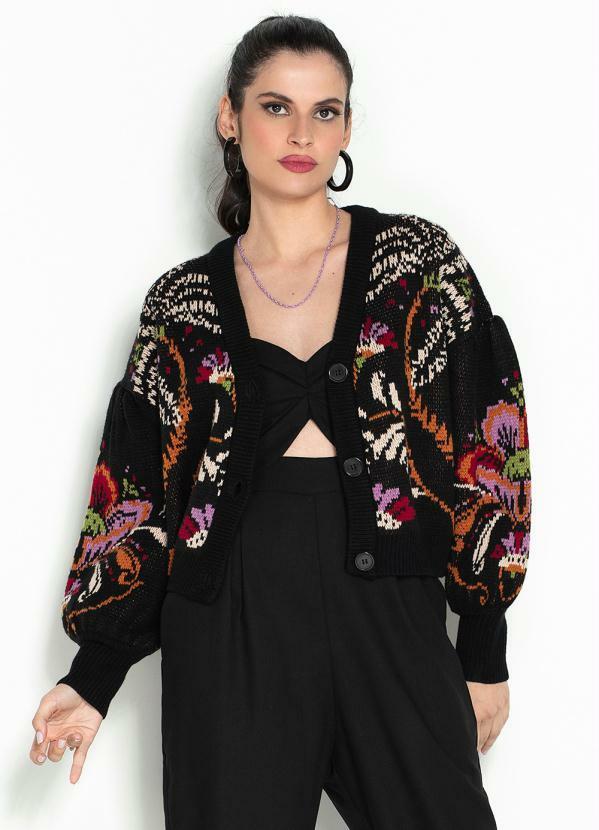 Farm - Casaco de Tricot Jardim Clássico Preto