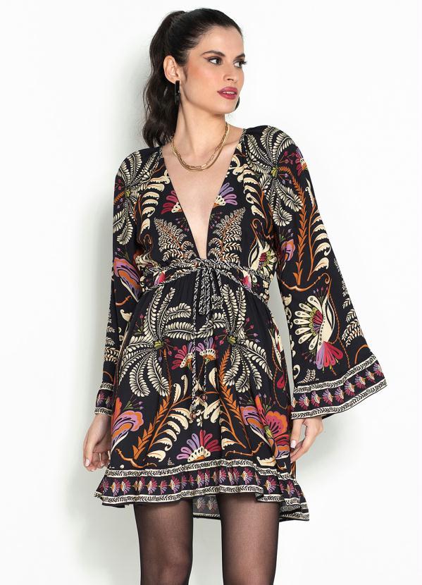 Farm - Vestido Curto de Viscose Jardim Clássico Preto