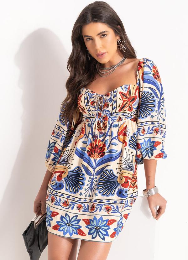 Farm - Vestido Curto Sonho de Mar Bege