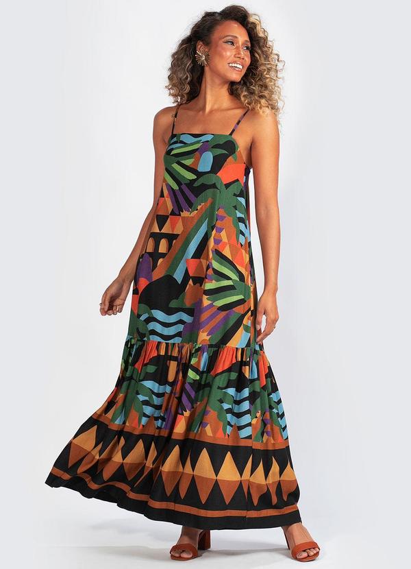 Vestido em Viscose! Decote reto e alças ajustáveis para o caimento perfeito. Elástico nas costas proporciona conforto. Detalhe de babado na barra adiciona charme. Confeccionado em viscose, é leve e ideal para os dias quentes. Perfeito para passeios ou eventos especiais. Sinta-se elegante e confortável com esse modelo exclusivo!