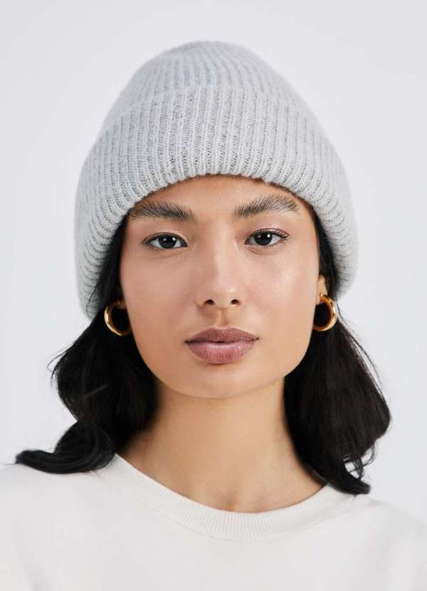 Hering - Gorro Feminino em Trico Canelado Cinza
