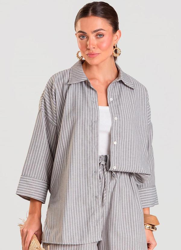 Dianna - Camisa Feminina Manga 7/8 Listrada Preto