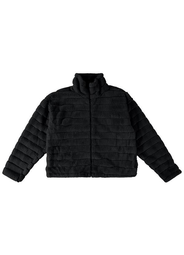 Enfim - Jaqueta Ampla em Pelúcia Canelada Preto